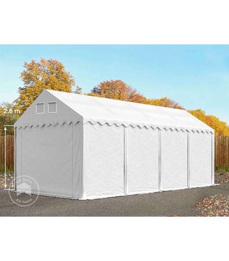 3x8m storage tent, PVC, white, w. ground bar, incl. statics package (concrete anchors): Looking for a dry, secure space for your vehicles, machinery, boats, or other materials, ideally all year round? Our TOOLPORT [product_line] storage tent in [colour], with dimensions of 3x8m, provides the perfect solution! The reinforced frame, constructed from fully galvanised steel poles (inside and out), ensures optimal protection against corrosion and rust, while being impact- and scratch-resistant. The robust design also features two zip gates, offering wide and accessible entrance points for easy access. The PVC tarpaulin, made from PVC, is tear-resistant, weatherproof, and durable, safeguarding your items against the elements. For added security, the storage shelter is available with an optional safety static set to meet your specific requirements. With a height of [product_height] and a weight of [product_weight], this multi-purpose storage tent is designed for quick and flexible assembly and dismantling. It’s also easy to extend and requires no foundation. ...