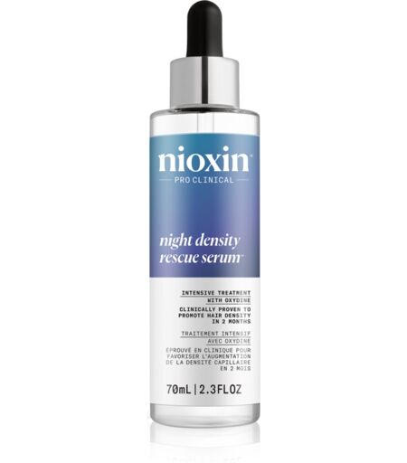 Nioxin Night Density Rescue Serum, 70 ml, Hair Serums for Women, Do you long for thick, strong hair, but instead your hair is breaking or is excessively falling out? Whatever the reason for these problems, hair care from NioxinNight Density Rescue Serum will restore your hair's lost vitality and healthy appearance. It will support the regeneration of existing hair, but also the growth of new hair - it will effectively stimulate the scalp and activate the function of hair follicles. It will take care of the strengthening of newly grown hair and at the same time regulate the loss of existing hair. With regular application, the hair will become stronger, gain a velvety shine, become less frizzy and its overall quality will be significantly improved. Enjoy beautiful, thick hair again. Characteristics: stimulates the scalp restores vitality of your hair increases the thickness and strength of hair activates the hair roots provides hydration and nourishment for your hair effectively stimulates new hair growth leaves hair strong and nourished How to use: Apply directly to the scalp. Massage your scalp gently. Do not rinse. ...
