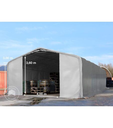 TOOLPORT 8x12m 3m Sides Commercial Storage Shelter, 4x3.6m Drive Through, PVC 850, grey with statics package (concrete anchors) - (49482)