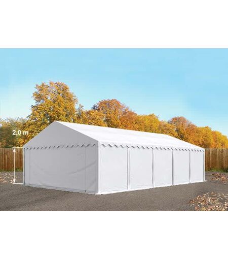 5x10 Storage Tent / Shelter w. ground frame, PVC 750, white: Struggling with limited storage space? The TOOLPORT [product_line] storage tent in white, with dimensions of 5x10m, offers a versatile and durable storage shelter to keep your materials safe and protected. The reinforced frame, made from fully galvanised steel tubes (inside and out), ensures maximum resistance to corrosion, rust, impacts, and scratches. Additional reinforcements in the roof area allow for efficient drainage of rain and snow, while the removable fixing base frame offers flexibility depending on your needs. The PVC 750 tarpaulin, featuring a dense inner mesh fabric, is exceptionally tear-resistant, hard-wearing, and long-lasting, with UV protection of 50+ in compliance with EN 13758-1. Two large zip-up doors provide easy access and excellent ventilation. Best of all, this storage tent requires no foundation, making it perfect for seasonal or temporary use. With a height of [product_height] and a weight of [product_weight], this multi-purpose storage shelter is quick and easy to assemble and dismantle, providing a practical solution for a wide range of storage needs. ...