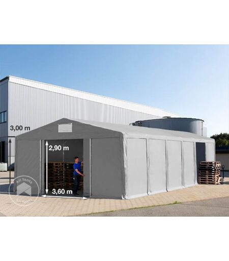 TOOLPORT 8x12m 3.0m Sides Storage Tent / Shelter w. ground frame and sliding door, PVC 850, grey without statics package - (79840)