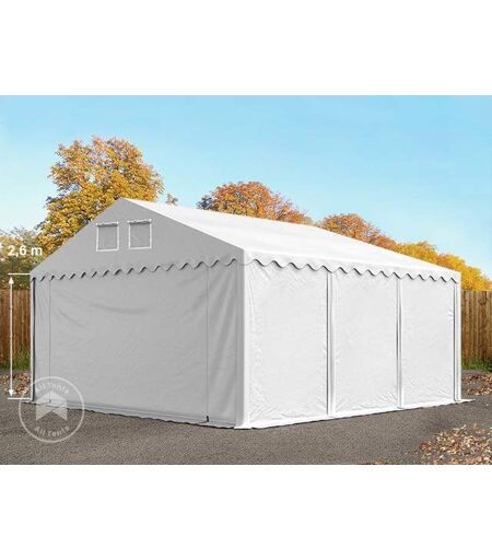 TOOLPORT 5x6m 2.6m Sides Storage Tent / Shelter w. ground frame, PVC 800, white with statics package (concrete anchors) - (57687)