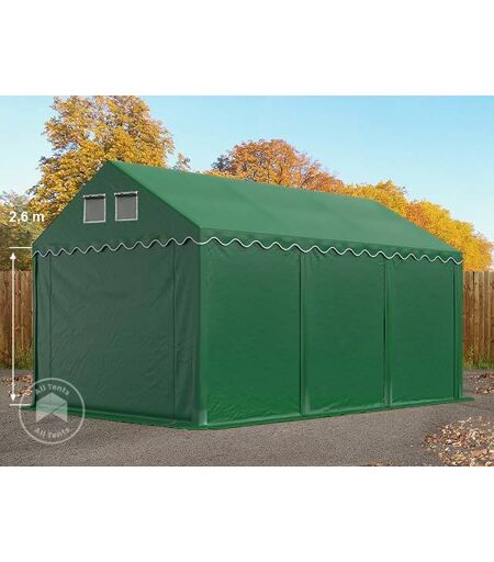TOOLPORT 4x6m 2.6m Sides Storage Tent / Shelter w. ground frame, PVC 800, dark green with statics package (soft ground anchors) - (57631)