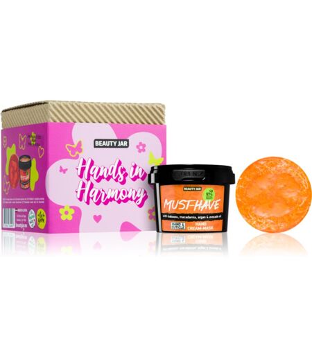 Beauty Jar Hands In Harmony, , Hand Masks for Women, Treat yourself or your loved ones to the perfect cosmetic setBeauty Jar Hands In Harmony. The set contains: Must Have Cream Mask for hands 100 ml Bar Soap with glycerine 60 g Characteristics: gift-wrapping comprehensive care for everyday routine does not leave a greasy film has a pleasant fragrance leaves the skin soft and smooth How to use: Use every product from the cosmetic set according to the instructions. ...
