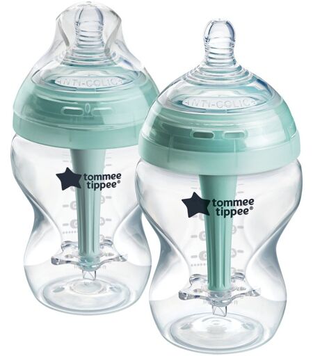 Tommee Tippee Advanced Anti-Colic, 2x260 ml, Baby Bottles For Kids, When you’re unable to breastfeed your baby, you can always rely on the Tommee Tippee Advanced Anti-Colic baby bottle. Its teat has a special shape to offer a feeling of comfort, which is so vital for a basic need such as feeding. Characteristics: helps promote active suction reflex just like during nursing profiled shape to facilitate correct holding effective airing system wide neck for easy filling and cleaning silicone teat the teat is shaped like a mother’s breast keeps the tongue and oral muscles activated helps reduce the occurrence of colic can be sterilised easily in a microwave promotes the correct coordination of sucking, swallowing and breathing How to use: You can sterilise it in the microwave in just 3 minutes. ...