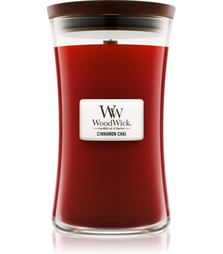 Woodwick Cinnamon Chai, 609,5 g, Scented Candles Home Scents, The Woodwick Cinnamon Chai scented candle will give your home a wonderful fragrance and create a cosy atmosphere that will make you feel great all the time. Characteristics: a spicy aroma How to use: Place the candle on a heat-resistant surface. Do not leave to burn for more than four hours. Never let the candle burn to the end. Never leave a burning candle unattended or close to easily flammable objects. Keep out of the reach of children and pets. ...