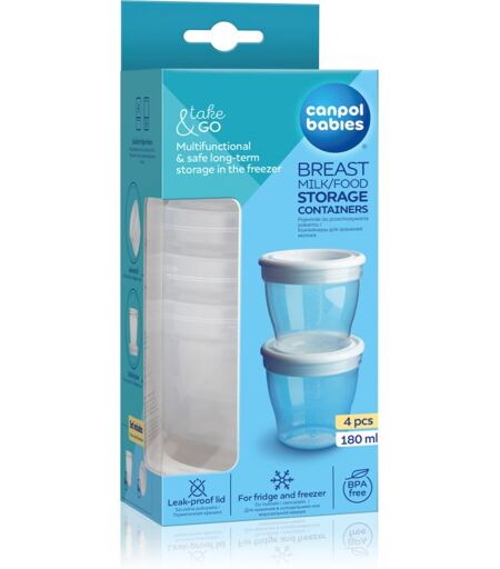 Canpol babies Storage Containers, 4x180 ml, Breast Milk Storage for Women, Characteristics: secure closure for instant use How to use: Use the container to store the pumped breast milk in the fridge or in the freezer. ...