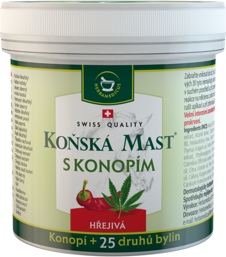 This is a unique balm made from hemp and 25 herbs. Horse balsam with hemp is made according to a traditional Swiss recipe. It contains also the fruit and flowers of horse chestnut, which have been proven to be effective against varicose veins. Horse balsam with hemp combines the relaxing effects of essentials oils with favourable effects of herbal extracts. A balanced content of the active substances provides a broad and strong effect. The warming version of Horse balsam with hemp is an effective preventive product for warming up the locomotive apparatus. It is suitable for all ages. HORSE BALSAM contains hemp and 25 herbal extracts that are known to: Help with joint, muscle and spine problems Relieve rheumatic conditions Provide help with lumbago problems ...